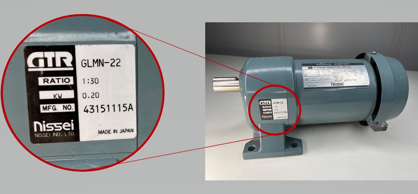 照片② 请拍摄减速机部标牌的照片。※拍摄时请确保能够看清文字部分。