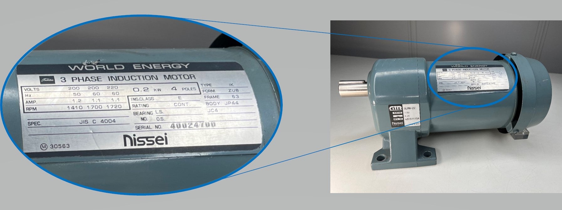照片③ 请拍摄电机部标牌的照片。※拍摄时请确保能够看清文字部分。