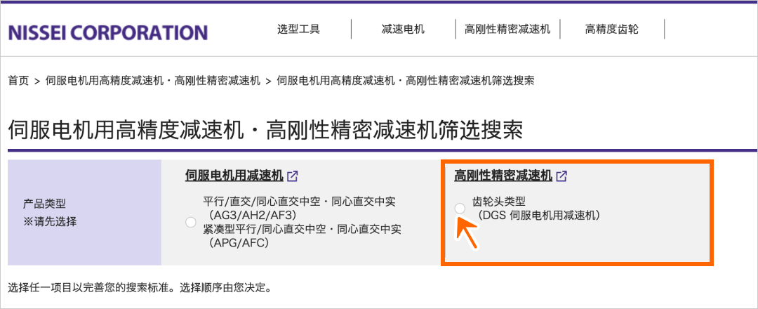 请从伺服电机用高精度减速机・高刚性精密减速机的筛选搜索中,选择高刚性精密减速机齿轮头型。