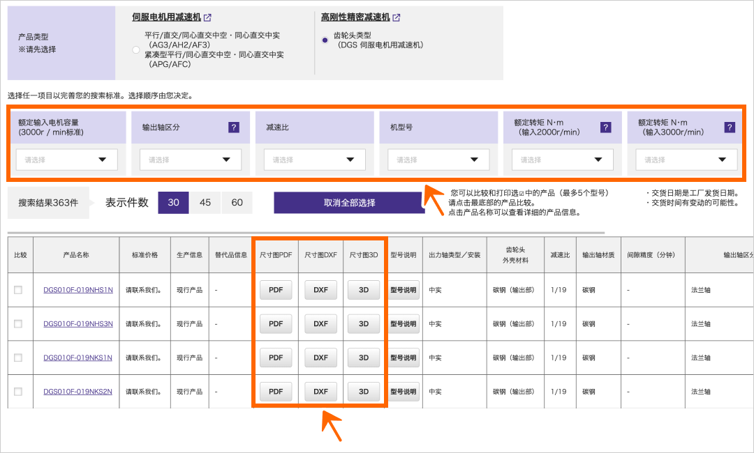 请选择中间部分的筛选条件,即可下载下方显示的型号的 CAD 数据。