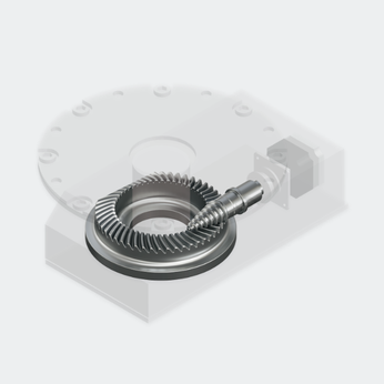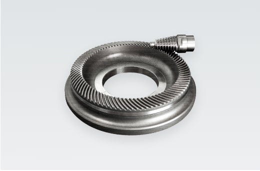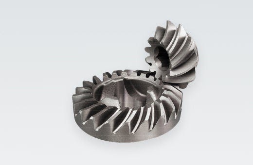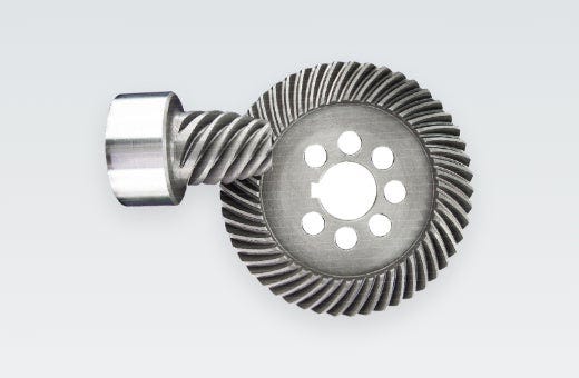 Spiral bevel gearCompared with a straight bevel gear, the contact ratio is improved. It makes rotation smoother and realizes high performance in terms of noises and vibration.