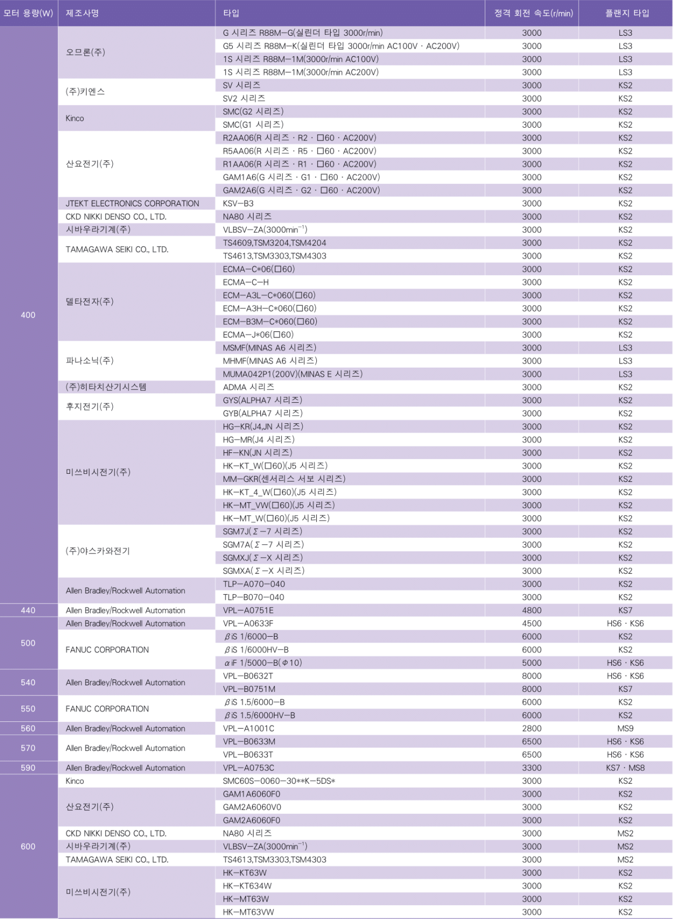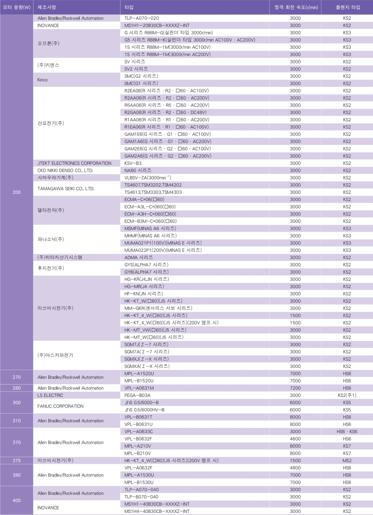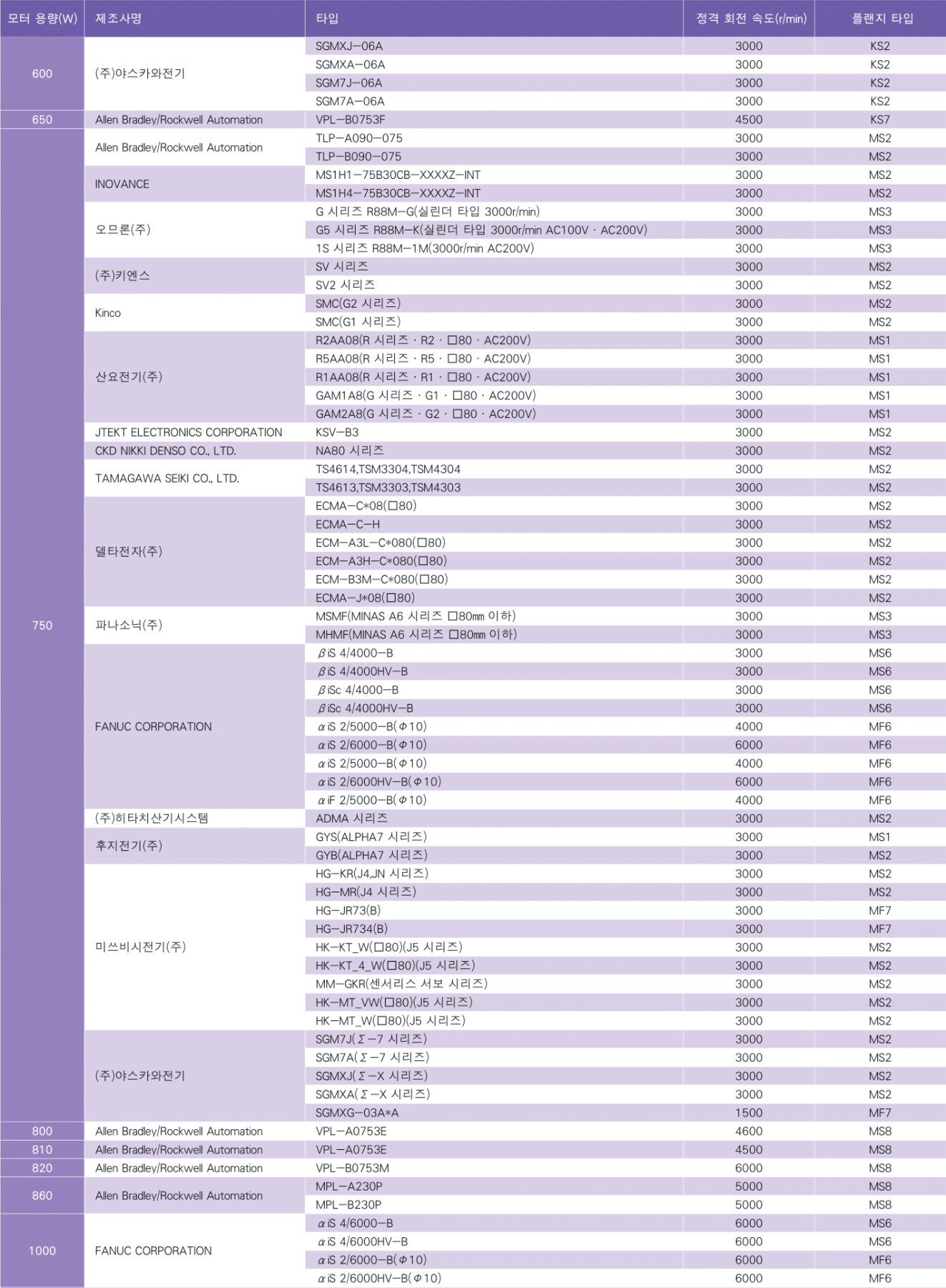 - 4 서 사용할 모터를 선정하고 장착 가능한 모터 장착 플랜지 타입을 선택한다.